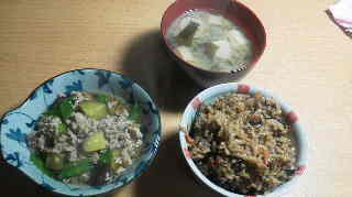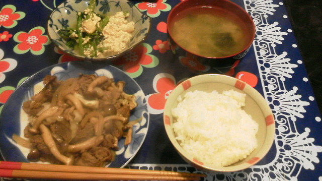 久しぶりに牛肉を買ってきたので(40%引きのものですが…)キノコとキャベツ、玉ねぎなど余り物の食材と混ぜて醤油と砂糖で味付けて食しました。小松菜の煮浸しは明日のお弁当用に少し残したり、オクラのおすましは少しとろみをつけるため片栗粉を溶かしていれてみたり、色々考えながら料理してみたつもりです。