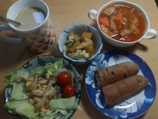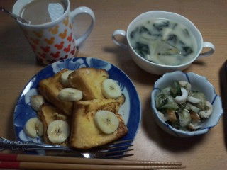 途中、頑張ってフレンチトーストを焼いてみたり、朝ご飯を豪華にミネストローネやら酢の物やらを作ってみたりはしたものの…upする余力もなく時間だけが過ぎていたようです。無駄に写メに残していたので載せておきます(=_=;)