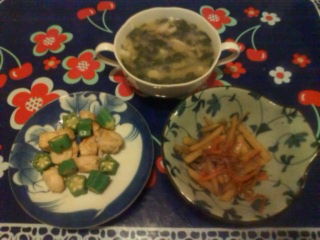 が、量は少な目なので満腹感は得にくいかもな献立になってしまいました(=_=;)彩りとしてトマトを添えるなどが今できる限界の譲歩でしょーか…。飢えて帰ってくるかめのには物足りないかもしれません、許せ!かめの。