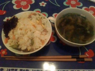 包丁を握るのも危険な香りがして不安になっていたのですが…母上様が晩ご飯用にとちらし寿司を持ってきてくれたので、朝方に作っておいた汁物とで晩ご飯にすることに(>_<)事前に手術日を伝えていて良かったです☆
