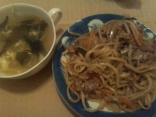 とりあえず1日が終わりました☆焼きそばはめんが太くしっかりしていて食べごたえがあり、おいしかったです(自画自賛☆)←現実逃避気味。