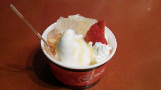 まずは「ヤミヨーグルト」のアロエマンゴーカップ。程好い酸味がマンゴーソースと絡み合い、美味でした☆