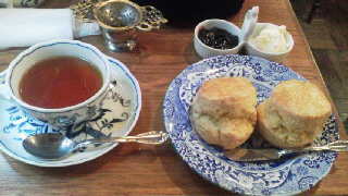 次は「西洋茶館」のスコーンセットです(^.^)普段はコーヒー派な円ですが、紅茶ならポット(2杯分)で出てくるみたいだったので、長居もしたかったこともあり、ミルクティーで注文しました♪