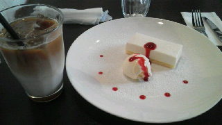 最後は「cafe Clicquot!」のレアチーズケーキとティラミスラテのセットです。これはとっても上品な味でした!!アイスもあっさりとした味わいで、ラズベリーソースですかね?程好い酸味と白い粉砂糖の甘さが調度よかったし、彩りも鮮やかでした♪